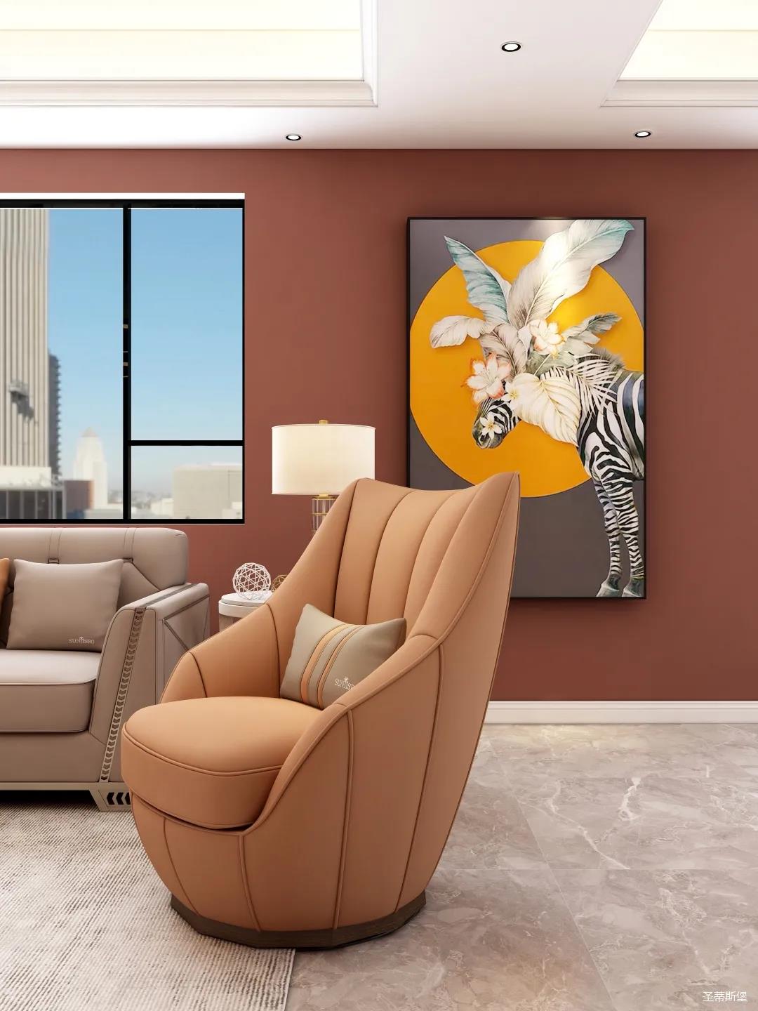 整體空間以高級內(nèi)斂的暖色調(diào)為主,用沉著的暖灰與活躍橙作為點綴,給空間帶來了靈動的氣息,卻不過分搶眼。質(zhì)地柔軟,回彈性極強的沙發(fā)、地毯,清新的綠植擺設,運用精美的金屬元素添加了空間的品質(zhì)感。