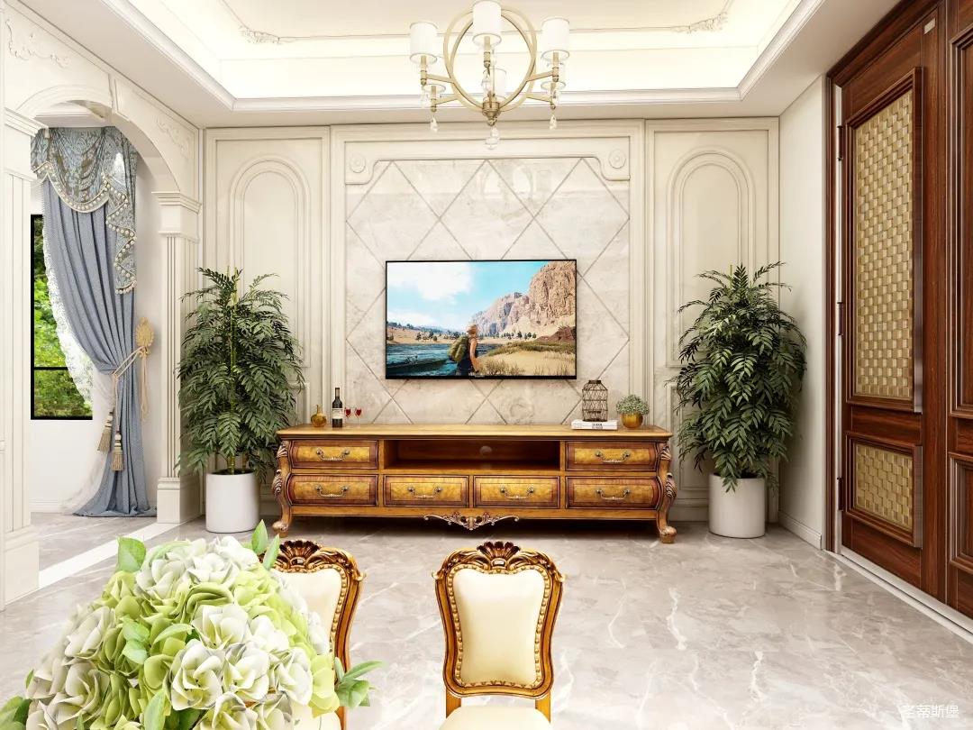 新古典風格中填入少量的傳統裝飾,與美式和諧相融。精細的實木手工雕刻,傳統形狀的基礎韻味與美式的細節取長補短。不但富有審美的愉悅,更重要的是令居住舒適而貼近自然。背景墻更是復古與潮流的完美結合,具有經典卻簡潔的圖案、復古卻時尚的色彩,既包含了古典風格的文化底蘊,也體現了現代流行的元素。