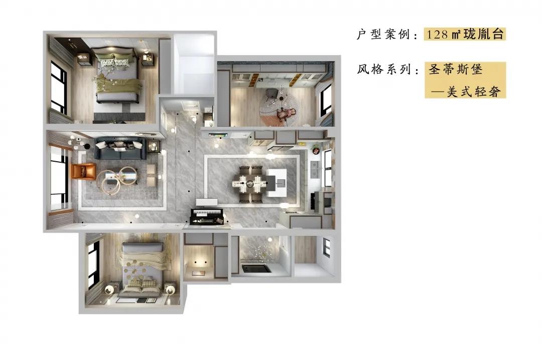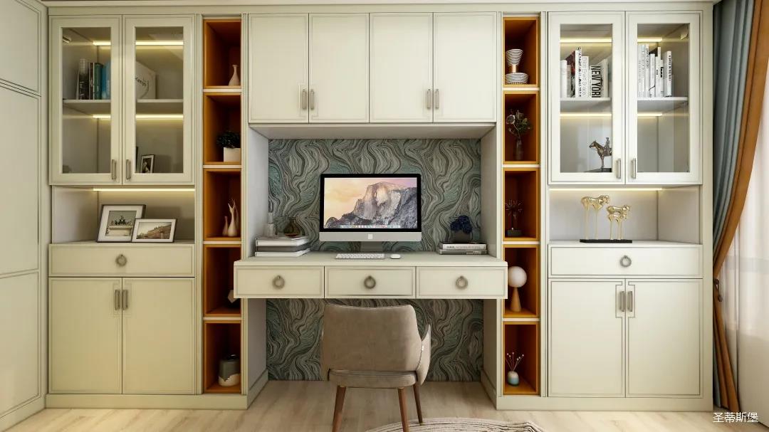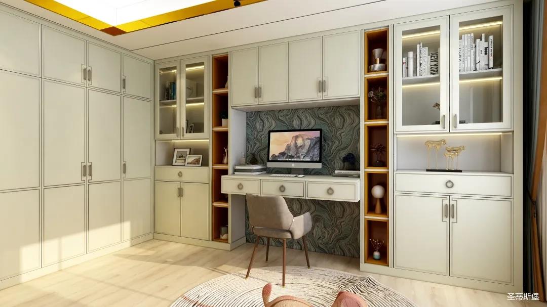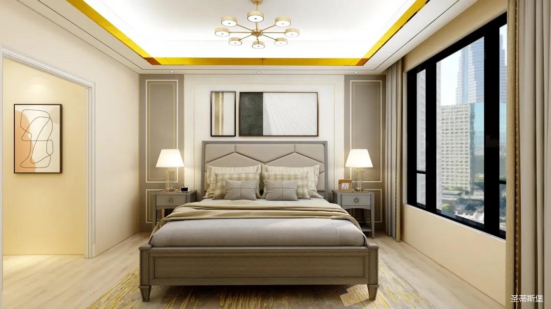 整個(gè)空間將對(duì)稱美進(jìn)行到底,雖在設(shè)計(jì)思想上有所保留,但呈現(xiàn)的卻是一個(gè)擁有秩序感的家,高級(jí)的莫蘭迪灰與溫柔的象牙白居中搭配,優(yōu)雅又治愈,能在睡眠上帶來安穩(wěn)與舒適的張力。