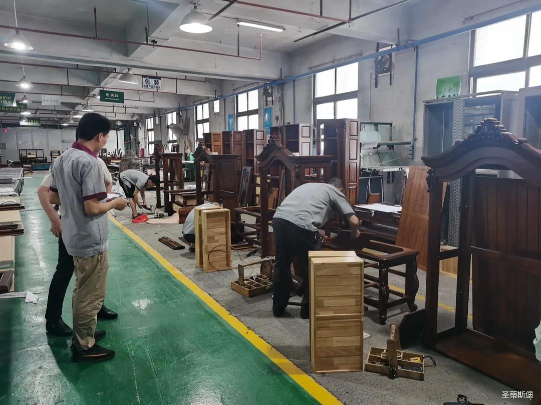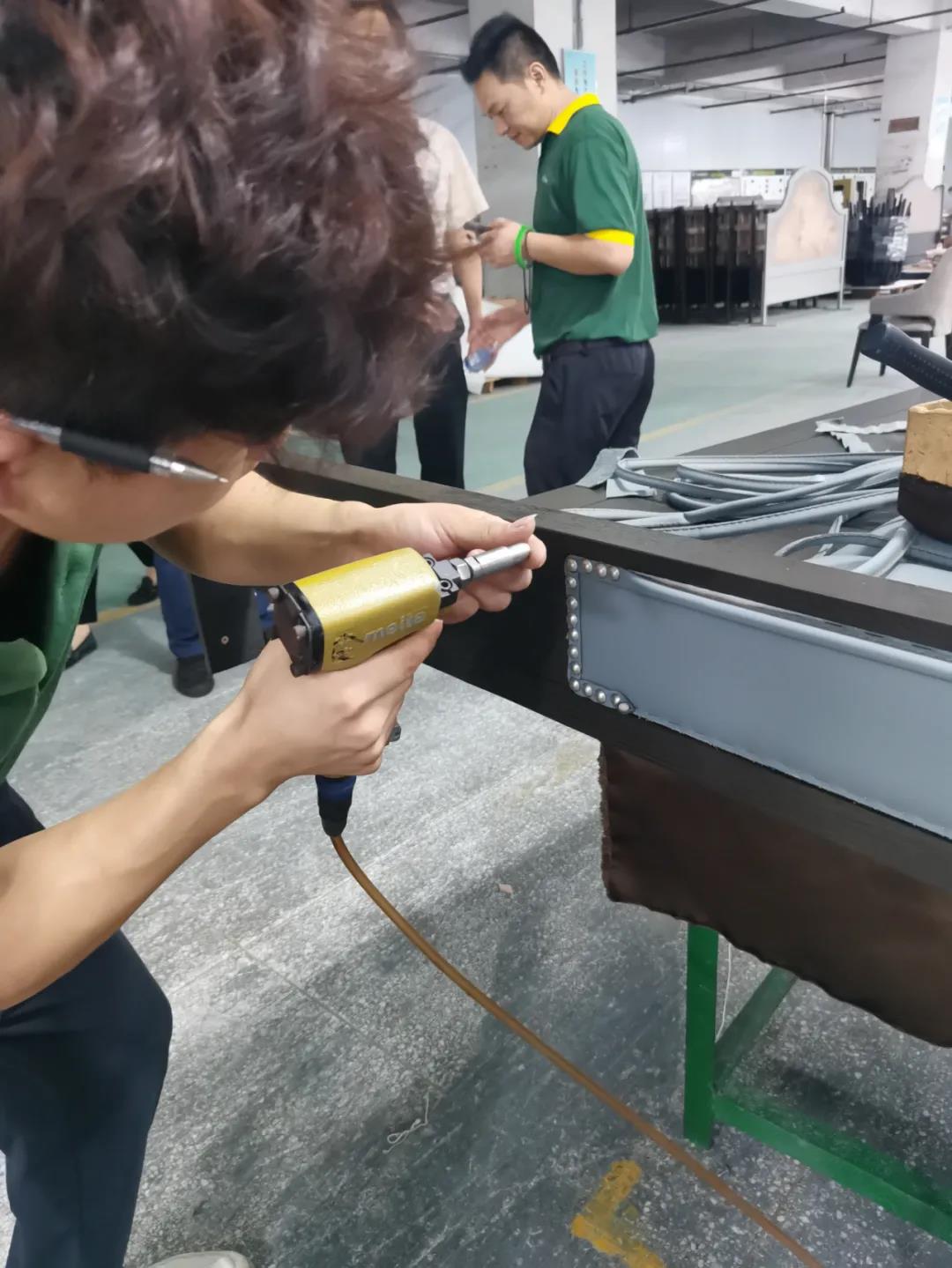 本屆技能競賽設置為工業組和商業組,共設競賽項目8項,其中,工業組競賽包含了打滾邊、打銅釘、自身產品組裝、成品組裝、柜體噴底色、修色、板材開料等七大細項。商業組以組裝辦公臺、床頭柜為主。