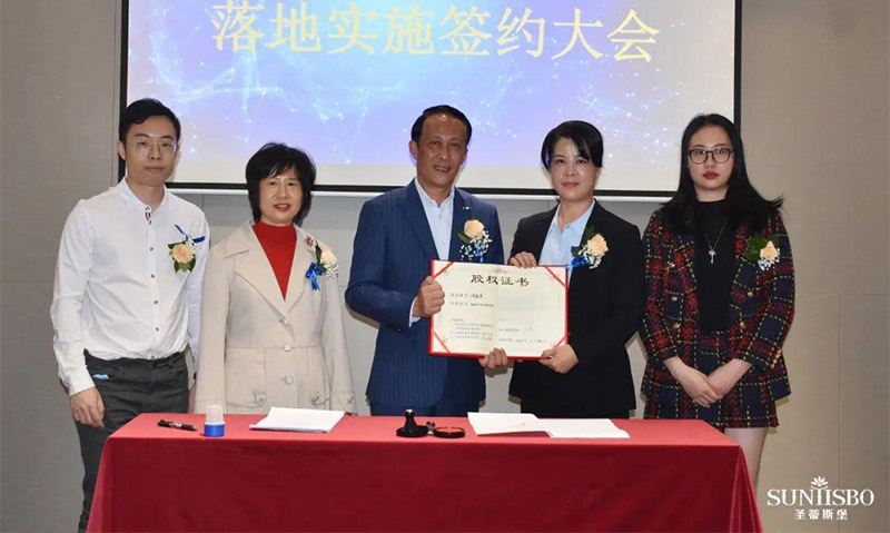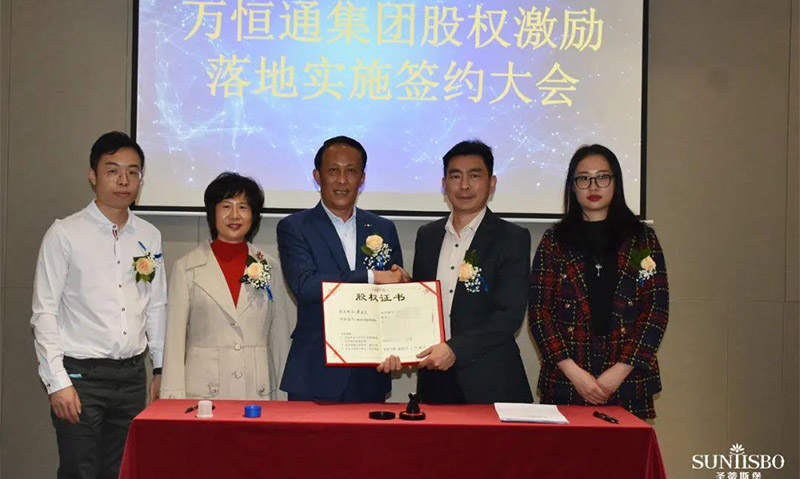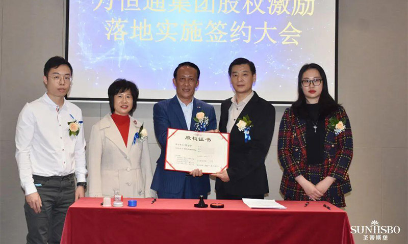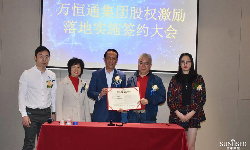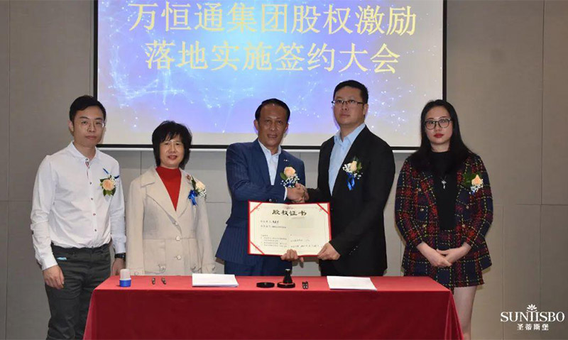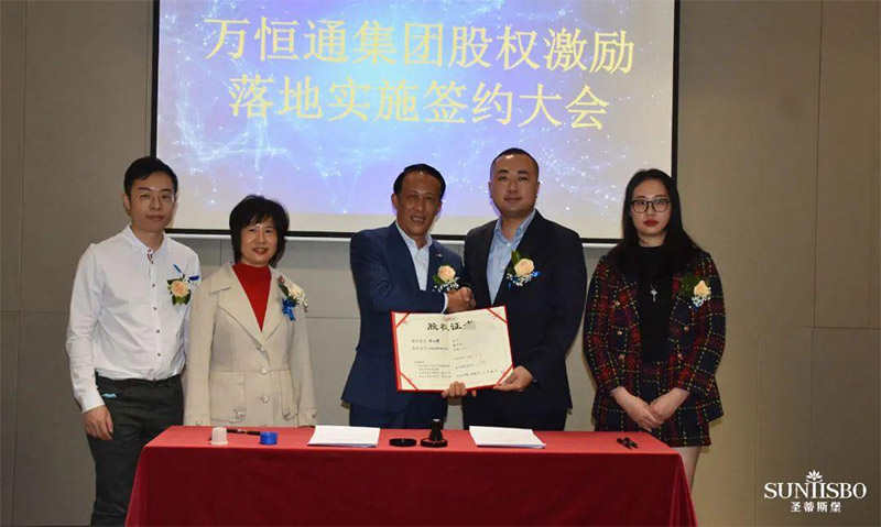 米兰体育官方网站集團執行董事及法人代表王浩基先生正式為第一期六位虛擬受限股股東授予榮譽證書并簽訂股權分配協議。