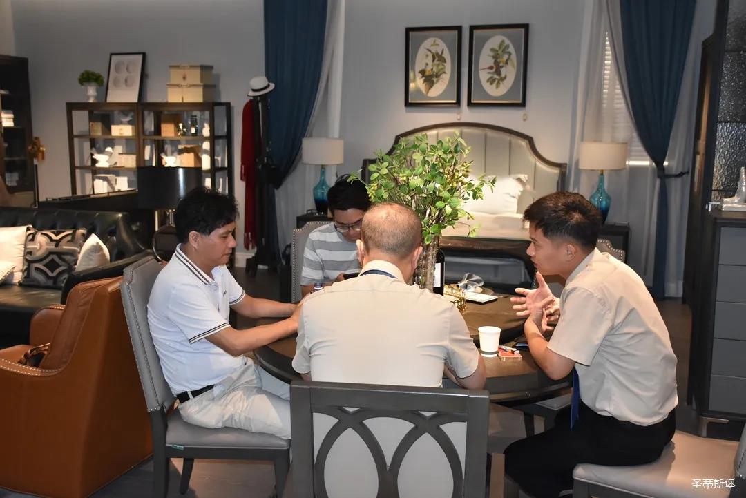 展會期間,全國家居建材連鎖巨頭—紅星美凱龍集團鄭總一行蒞臨圣蒂斯堡營銷中心進行參觀交流。集團領導熱情接待,雙方進行了深度洽談,并一起參觀了洛斯、里奧、洛卡等展廳。