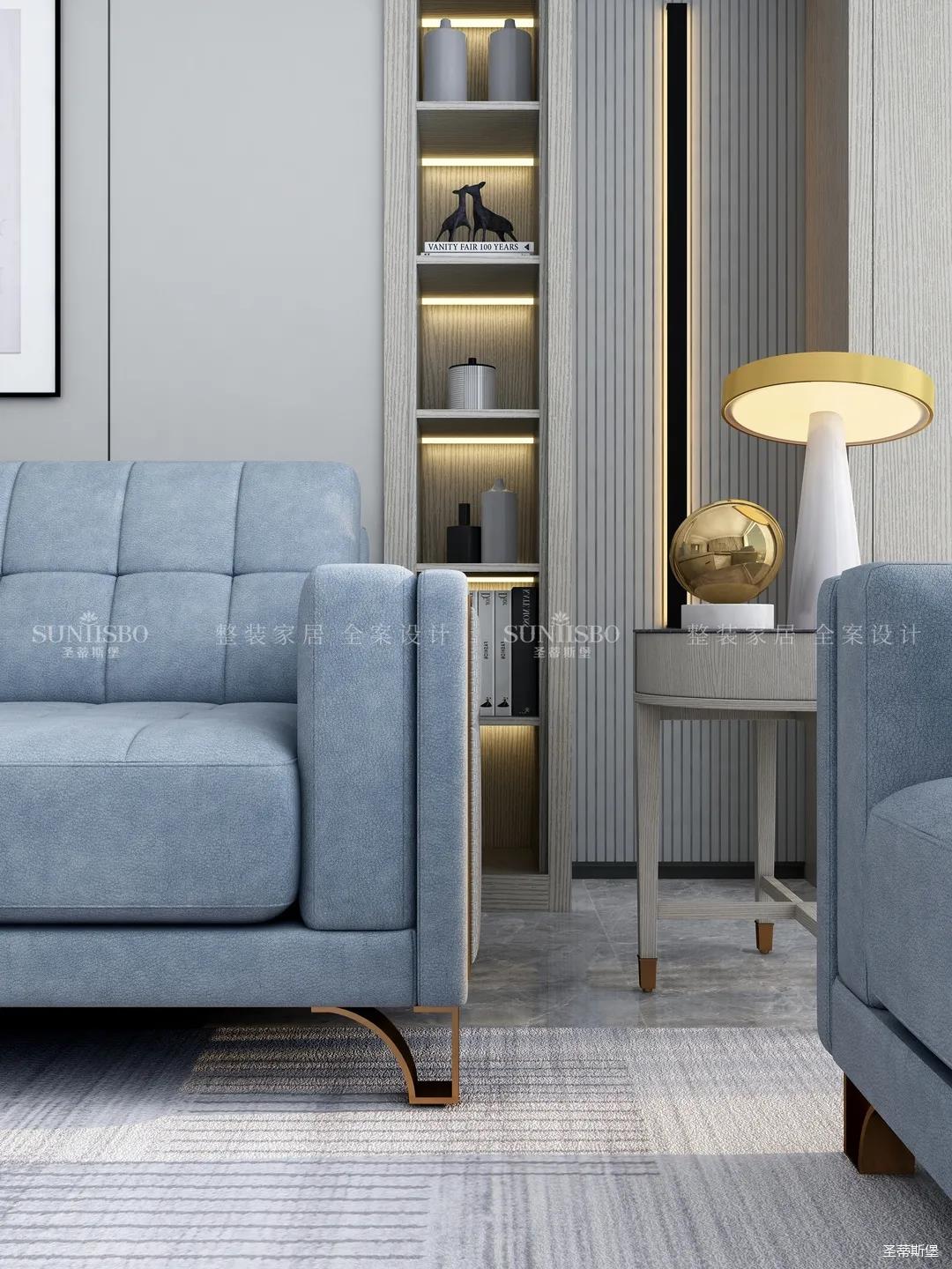時尚簡約與現代簡奢的雙重美學在客廳中發揮的淋漓盡致,飽滿填充的親膚磨砂皮材質沙發,貼心呵護身體曲線,回家即可來一次舒適愜意的SPA。圍繞著時尚、舒適家的設計,剔除了傳統簡奢金屬堆砌,打造定制的實木柜體,在深灰與淺灰之間切換有度,盡顯大方自然。