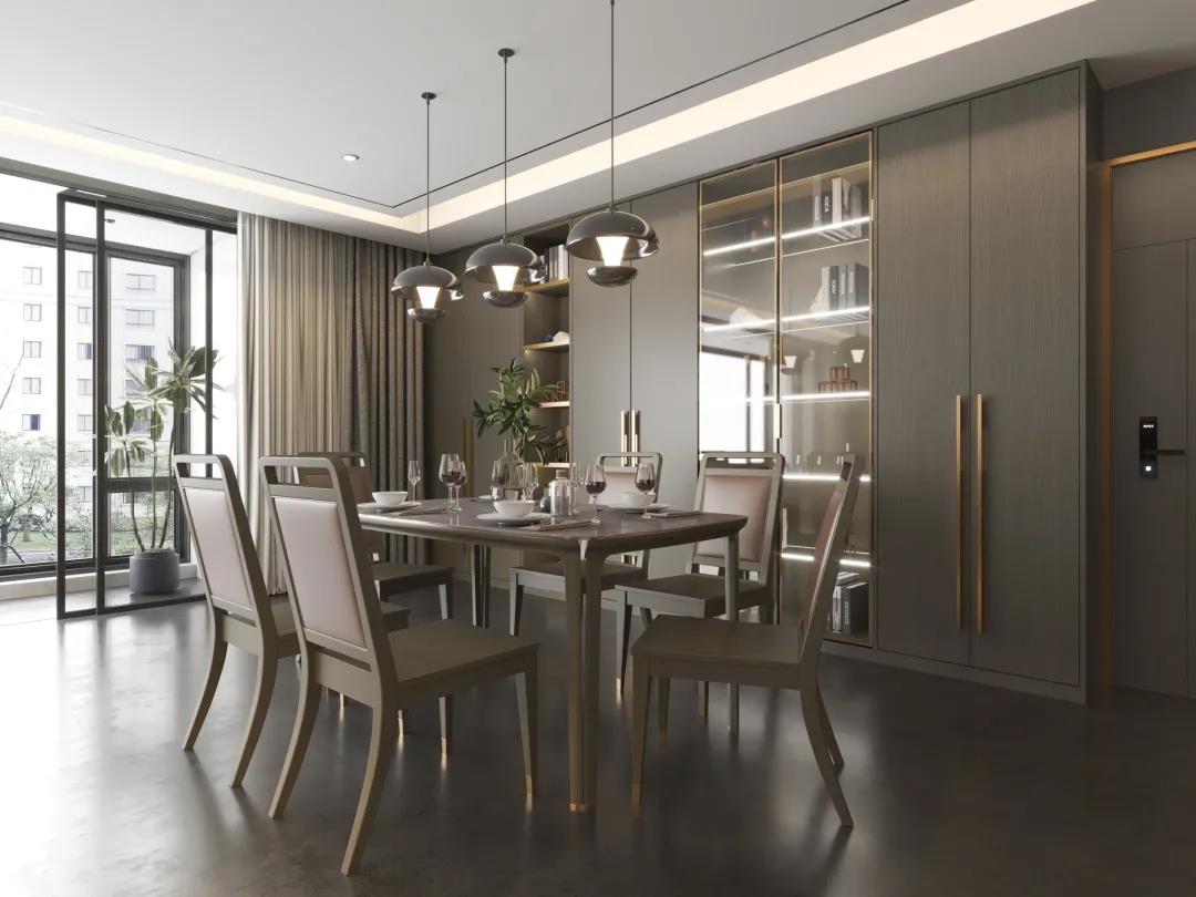 餐桌以簡潔干練造型為主,高級百搭的灰色調(diào),軟包真皮,金屬鑲嵌的細(xì)節(jié),打造出悠閑奢華、優(yōu)雅精致的風(fēng)格,讓家的味道從一日三餐中抵達(dá)內(nèi)心深處。